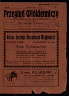 Dwutygodnik ; R. 1, nr 1 (1922)- ; 34 cm ; Opis na podstawie R. 1, nr 2 (1922) oraz bibliografii ; Bibliografia Prasy Łódzkiej 1863-1944 / Wiesława Kaszubina. - Warszawa 1967, poz. 624 ; Opis wg NUKAT ; Późniejszy tytuł "Przegląd Włókienniczy : organ polskiego przemysłu włókienniczego"