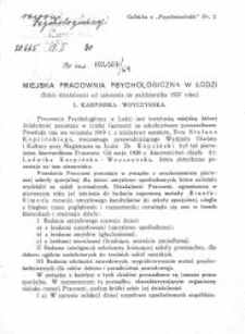 | Miejska Pracownia Psychologiczna w Łodzi : (szkic działalności od założenia do października 1927 roku) | Dec 7, 2015 |