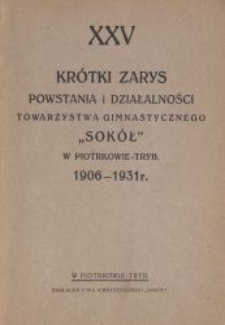 | Krótki zarys powstania i działalności Towarzystwa Gimnastycznego "Sokół" w Piotrkowie Tryb. : 1906-1931 r. | Dec 7, 2015 |