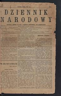 45 cm ; Dziennik ; Wychodzi o godzinie 8-ej rano z wyjątkiem poniedziałków i dni poświątecznych ; Numeracja: R. 1, nr 1 (2 maja 1915) - R. 23 [?] (1939) ; Od R. 4, nr 103 [?] (10 maja 1918) red. nacz. Franciszek Dutkiewicz ; R. 5, nr 47 [?]-nr 172 [?] wyd. i red. Franciszek Dutkiewicz ; Od R. 5, nr 183 [?] wyd. i red. Tomasz Pluta ; W R. 18 (1935) red. i wyd. Tomasz Pluta ; W R. 21 (1935) wyd. i red. Bronisław Kalwary, nr 190 (16 lipca 1935) red. i wyd. Tomasz Pluta ; W R. 21 (1935) podtytuł: codzienne pismo polityczne i gospodarcze ; W R. 21, od nr 253 [?] (17 września 1935) tytuł: Nowy Dziennik Narodowy ; W latach 1938-1939 red. i wyd. Tomasz Pluta ; W R. 11 (18 kwietnia 1925) i w R. 12 (14-15 maja 1926) brak oznaczenia numerów ; Wyd. Biuro Prasowe Departamentu Wojskowego NKN ; Drukarnia Państwowa pod zarządem Departamentu Wojskowego N.K.N. Piotrków ; Od R. 1, nr 140 (30 września 1915) "Drukarnia Polska" Piotrków ; Od R. 4, nr 12 [?] (15 stycznia 1918) Drukarnia Państw. w Piotrkowie ; Od R. 5, nr 106 [?] (1 czerwca 1919) Drukarnia Narodowa (dawniej Państwowa) ; W latach 1935, 1938-1939: Piotrków-Tomaszów-Radomsko ; W latach 1932-1934 miała miejsce przerwa w wydawaniu Dziennika Narodowego ; W r. 1935 czasopismo wznowione 30 sierpnia pt. B. Dziennik Narodowy - występuje ciągłość ozn. kolejności roczników z uwzględnieniem przerwy tzn. R. 17 (1931), a następnie R. 18 (1935) ; Równolegle w r. 1935 wychodził Nowy Dziennik Narodowy : codzienne pismo polityczne i gospodarcze ozn. jako R. 21 (1935) ; W latach 1935-1939 brak ciągłości ozn. kolejności roczników: R. 21 (1935), a następnie R. 22 zamiast R. 24 (1938) oraz R. 23 zamiast R. 25 (1939), lub ewent. miała miejsce przerwa w wydawaniu gazety w latach 1936-1937 ; Ostatni znany: R. 23 [?], nr 210 (30 sierpnia 1939) ; Opis na podst. NUKAT ; Opis uzup. w WBP w Łodzi na podst. dostępnych oryginałów gazety